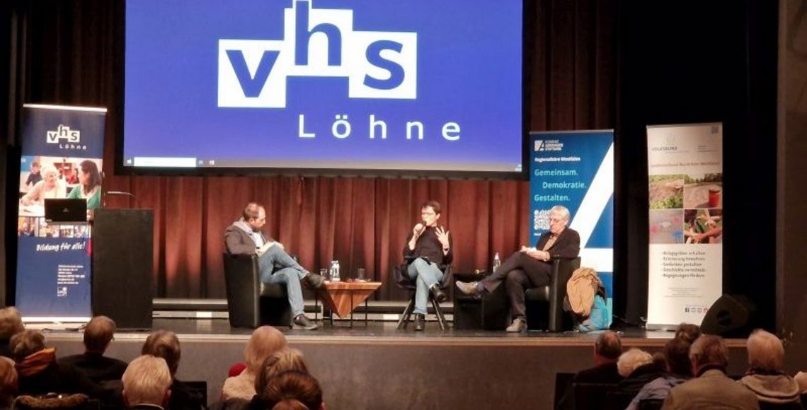 Löhne/Westfalen. Ergänzend zur Plakatausstellung „Wege zum Frieden. Kriegsfolgen und Friedensprozesse“, die aktuell in der Volkshochschule Löhne gezeigt wird, hat im Februar dort ebenfalls eine spannende Veranstaltung zu dem Thema stattgefunden. In Kooperation mit der VHS und Konrad-Adenauer-Stiftung lud der Volksbund interessierte Menschen aus der Region ein, um knapp 80 Jahre nach Ende des Zweiten Weltkrieges die Frage zu besprechen, ob zurzeit kein Frieden (mehr) in Sicht ist.